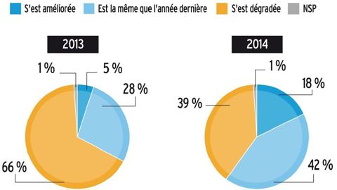 Question 2 : Par rapport à l'année dernière à la même époque, considérez-vous que votre trésorerie... ?
