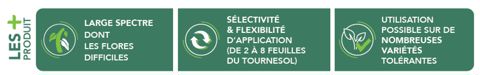 - Sélectivité équivalente à Express® SX® + Trend90®, testée sur plusieurs variétés.