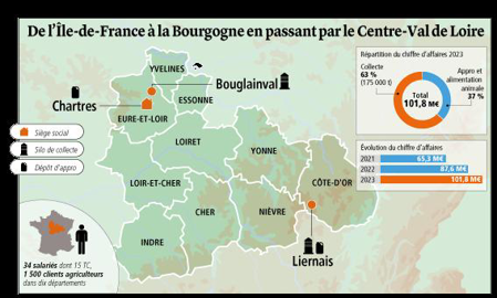 Située en face de Syngenta et à quelques mètres de la Scael, Adagri reste discrète au sein du Jardin d’entreprises de Chartres (Eure-et-Loir), mais elle est en pleine expansion. Tractopelle et télescopique sont à l’œuvre, la plateforme de stockage de 2 000 m2 va doubler de surface. Le développement des bâtiments est à l’image de celui du groupe. Peu à peu, le négoce, né dans les Yvelines, s’impose dans le paysage du Centre-Val de Loire. En huit ans, le nombre de ses salariés a plus que doublé, passant de 15 à 34 personnes. Et le chiffre d’affaires a dépassé les 100 M€ en 2023.