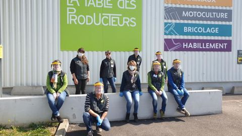 L’équipe du magasin Point vert d’Oloron Sainte-Marie, dans les Pyrénées-Atlantiques, parée pour respecter les gestes barrières © C. POEYDOMENGE/EURALIS